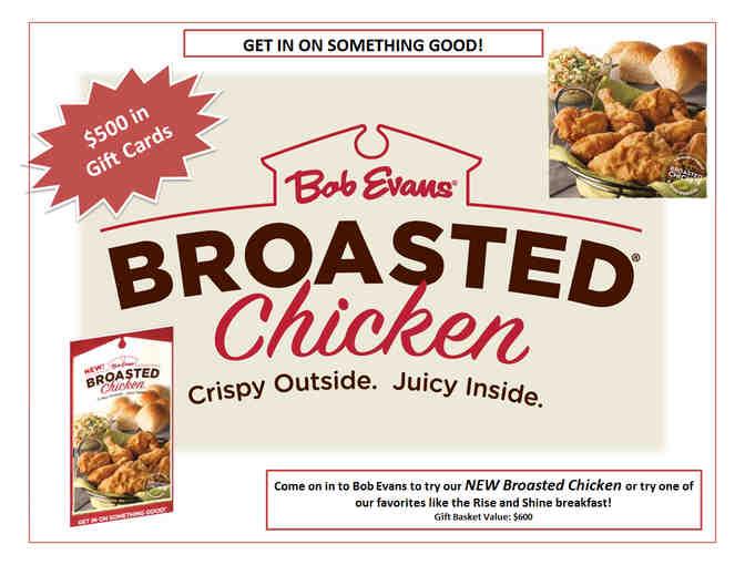 The Bob Evans Collection includes $500 in Bob Evans Restaurant gift cards, Bob Evans cell phone desk stand, 4 tickets to the Bob Evans Farm Festival, 2 Bob Evans notepads, 2 Bob Evans pens – one has a USB thumb drive attached, $32 in food products coupons, 3 bottles of Bob Evans Signature Sauce, 1 Bob Evans water bottle, and 1 Bob Evans Farms farm shaped stress ball. Estimated value is $600. Donated by Bob Evans Farms.