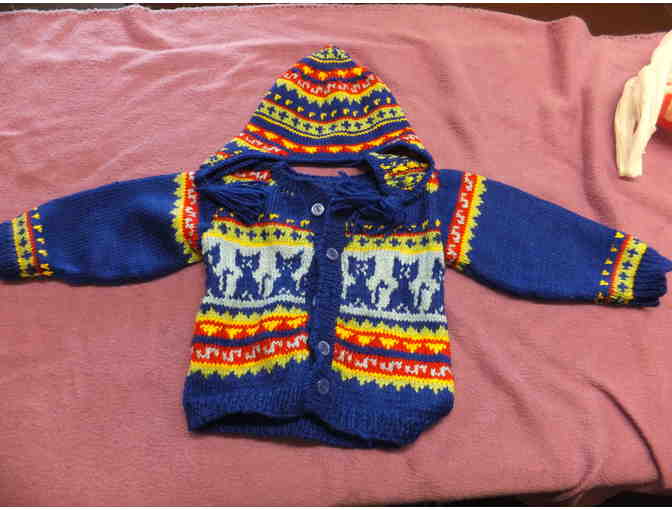 Knitted Sweater with Cats and a Hat