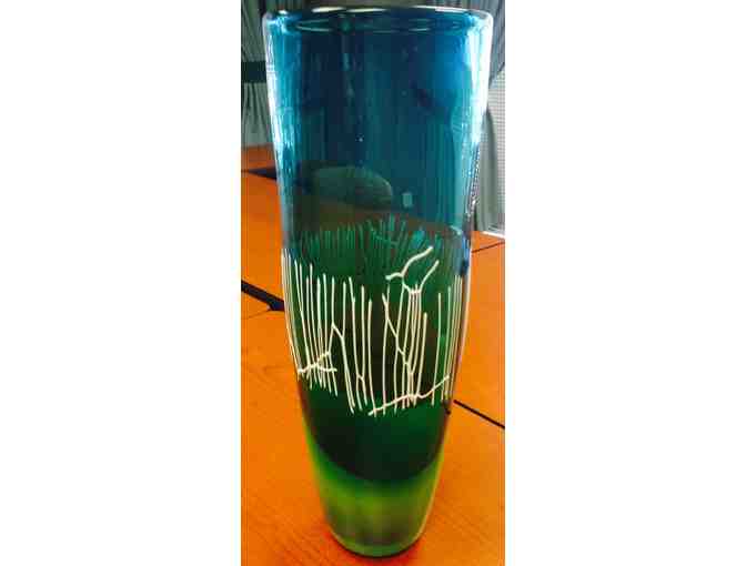 Custom-made art glass vase made by Terry Bloyd. 17 inches tall x 6 inches in diameter.