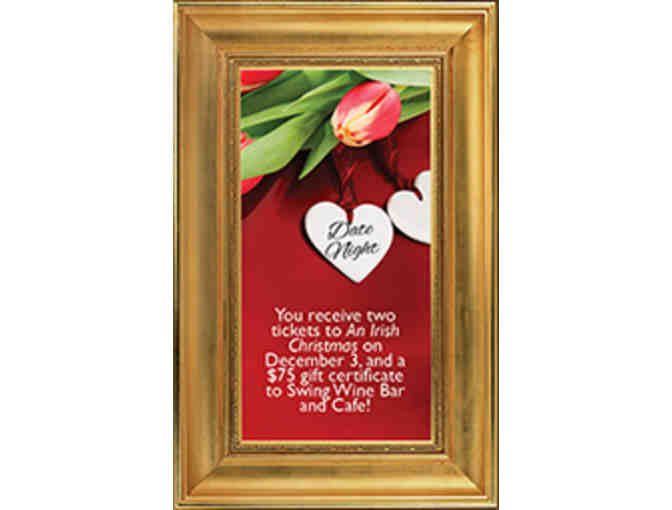 Take your special someone out for an intimate evening of just you two. You deserve some time together between busy holiday activities with friends and family. Includes a $75 gift certificate to Swing Wine Bar and two tickets to An Irish Christmas at the Center on Wednesday, December 3, 7:30pm