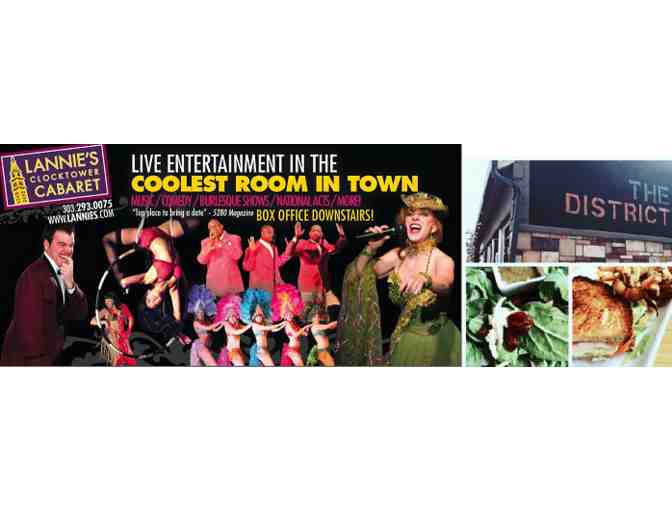 Make it a date night with dinner and a show in downtown Denver! With a $50 gift certificate, first enjoy great food at one of Uptown's newest restaurants - The District, featuring a bar with 29 tap handles that are heavily made in Colorado from local brewers. After dinner, grab the voucher for two free passes and head over to Lannie's Clocktower for the show Under Paris Skies which features Gypsy jazz music inspired by Django Reinhardts Hot Club of France of the 1930s. It combines American standards with an exotic Gypsy sound to create joyous, passionate music.