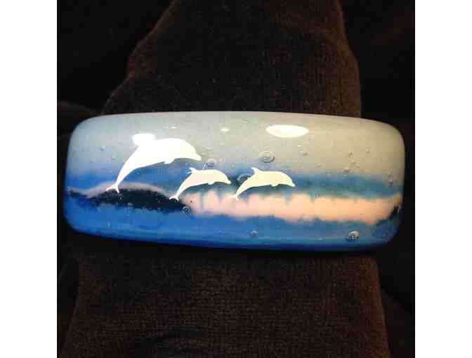 Ocean wave made with David Alcala's glass tapestry technique. AAE dolphin decals jump from the wave.