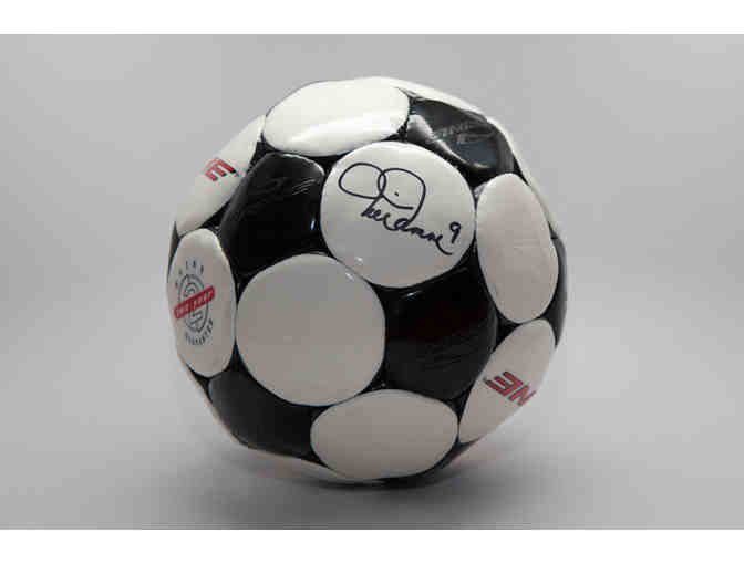 Regulation size soccer ball signed by soccer superstar Mia Hamm.