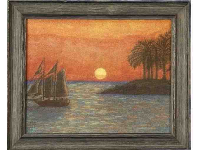 Few sights are as spectacular as a sunset in Key West. This sand painting captures the beauty of the red sky, and the sun sinking slowly into the serene sea at the southernmost tip of the continental U.S.