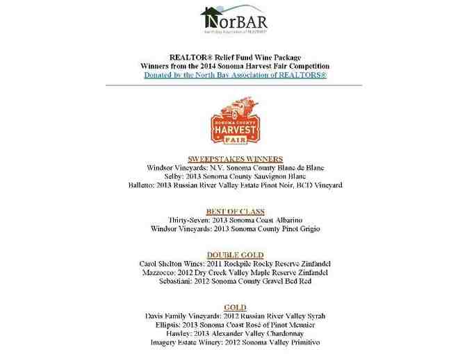 This very special wine package has been assembled with great thought and represents 12 award winning wines that were bestowed honors at the September 2014 Sonoma Harvest Fair Competition. For the highest bid, these are wines you'll enjoy for months to come: