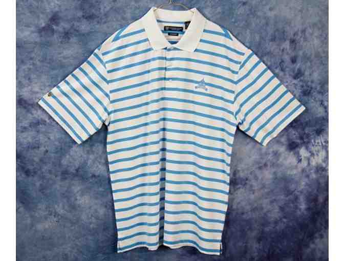 Golf Shirt with Congressional Country Club Logo - Medium in Aqua/White Stripe