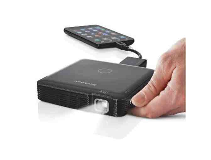 The portable projector connects to multiple devices for a “big screen” view of just about anything including business presentation, movies, video games, web videos, sports and TV shows.