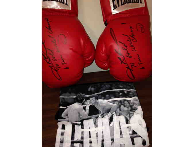 Sugar Ray Leonard Autographed Boxing Gloves & T-Shirt