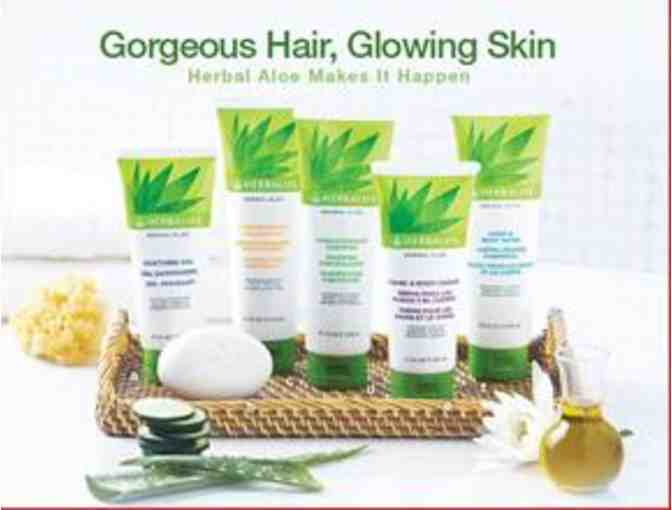 Included are Skin Care 7 Day Results Kit for Normal to Dry skin, Raspberry Tea Concentrate, Herbal Aloe Face & Body Sunscreen SPF 30, Herbal Aloe Bath & Body Bar, Hand & Body Wash, Hand & Body Cream, Strengthening Shampoo and Strengthening Conditioner.