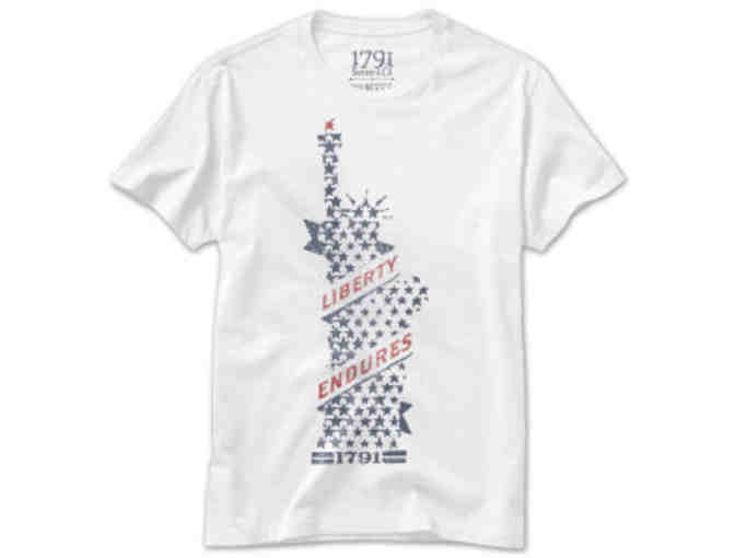 Show your stars and stripes with this 1791 "Liberty Endures" t-shirt, featuring and red & blue Statue of Liberty print.