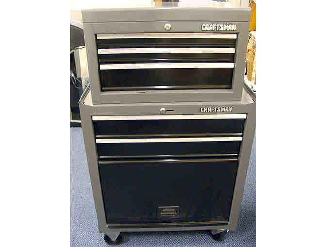 The Craftsman 5-drawer standard duty tool center offers an ideal storage solution for tools and supplies with a thoughtful design and at a great price. With separate top and bottom chests, the tool center offers drawers in varying sizes to store hand tools, power tools, parts and everything in between. The bulk storage area on the bottom offers plenty of space for larger gear such as welding helmets and circular saws.