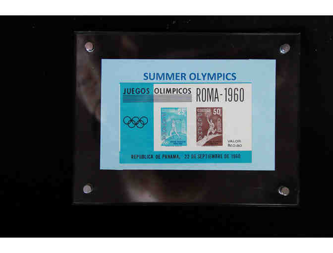 Framed souvenir stamp sheet of 1960 Rome Summer Olympic Games issued by Panama.