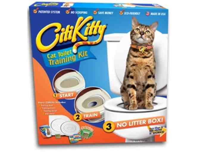Patented cat toilet training system that fits all toilet sizes to save you money and mess from having a litter box!