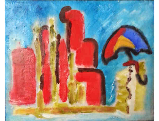 Oil and encaustic painting, framed. Total size of painting with frame is 10" x 12".