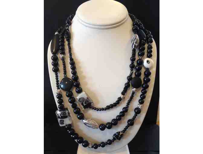 Beautiful, one of a kind handmade beaded necklace! Black and white theme goes with everything.