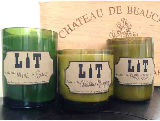 Lit Candles is San Francisco based and consists of candles and candle accessories using recycled wine bottles. We currently make natural candles in a variety of amazing scents and stunning candle lanterns. We use only soy wax. Why? Glad you asked. It burns cleaner (and some say longer), plus it's considered to be more environmentally friendly versus the alternatives since it's from a renewable source. Since we are also using recycled wine bottles we thought it was the perfect fit for our product.