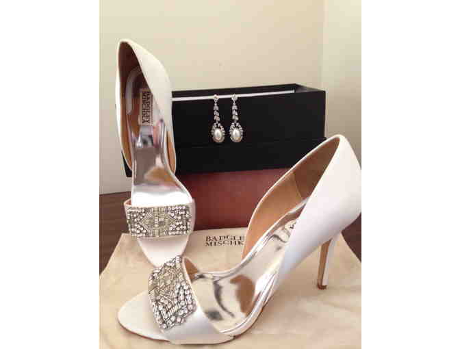 Gorgeous Badgley Mischka Women's Alessandra Pump in white satin, size 11. Gentle wearing on bottom of shoe from being tried on indoors. Never worn outside. Retail price is $235.00