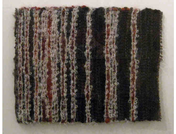 Architect Deborah Epstein's passion for materials, color, and composition produces finely crafted, specialty design work. She uses fibers as a vehicle to express her personal observations and exploration into the beauty of nature all around us. This visually pleasing 8.5" X 10.5" piece, woven in wool, cotton and nylon, is titled Lichen Study #4. The finished framed size is 19" x 16.5".