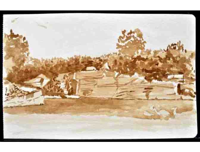 This framed 5" X 8" sepia drawing, Rockport Quarry, was inspired by a hike in the woods of Rockport, MA. It is beautifully matted and framed to measure 14" x 18.5"