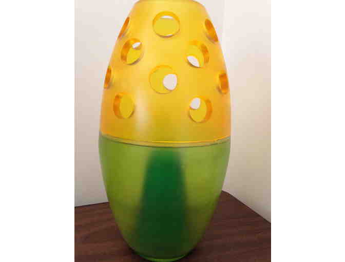 Contemporary Yellow/Green Barrel vase can be used up or down. Add some character to your home or office.