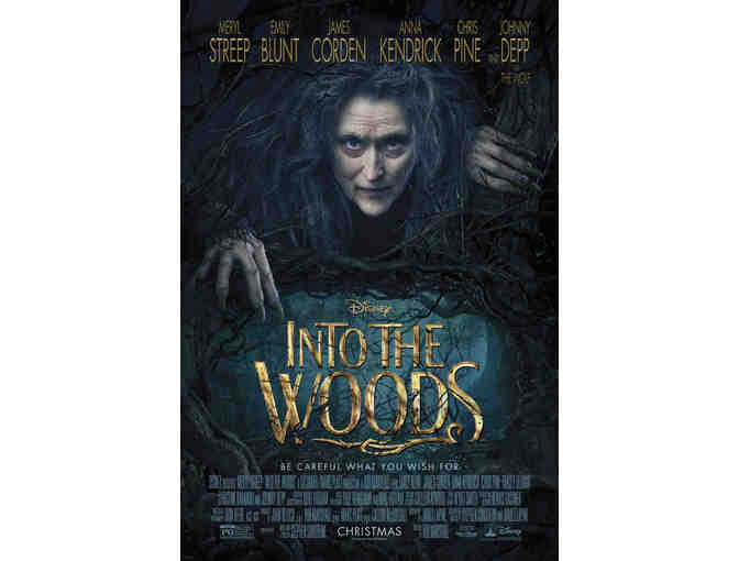 Enjoy a private screening of the upcoming Disney release of "Into the Woods" on the historic Walt Disney Studios Lot in Burbank for up to 25 guests on a date close to the opening date of the film (or possibly after). The film is a modern twist on several of the beloved Brothers Grimm fairy tales, intertwining the plots of a few choice stories and exploring the consequences of the characters wishes and quests. Rob Marshall directs an all-star cast featuring Meryl Streep, Johnny Depp, Emily Blunt, Anna Kendrick and Chris Pine. Into the Woods is based on the Tony-winning original musical by James Lapine, who also penned the screenplay, and legendary composer Stephen Sondheim, who provides the music and lyrics. Produced by Marshall, John DeLuca, Wicked producer Marc Platt and Callum McDougall, Into the Woods hits theaters Dec. 25, 2014.