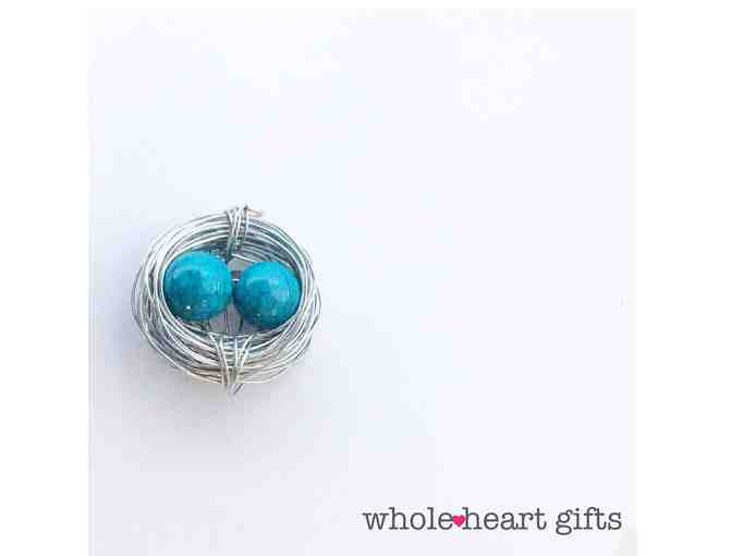 Wire wrapped nest pendant with two turquoise colored &eggs. Would be a great gift for mothers and grandmothers.