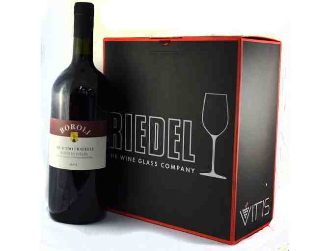 Wine and Glasses- 2004 Boroli Quattro Fratelli Barbera D'Alba 1.5L & Pair of Ridel Glasses