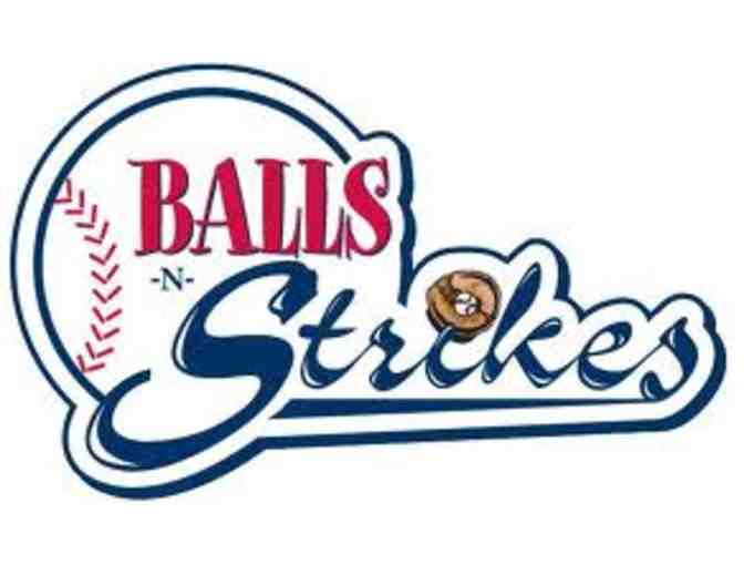 Balls-N-Strikes' fully astroturfed, 10,000-square-foot facility helps budding baseball stars fine-tune their swing and pitch accuracy with batting cages and professional, one-on-one training sessions. A half-hour in a climate-controlled batting cage invites guests to hone control by taking aim at baseballs, softballs, and imaginary meatballs fired from a personal pitching cannon. Patrons seeking tailored playing advice can meet up with a college or Division I baseball instructor for a 30- or 60-minute training session. Beneath the complex¿s 35-foot ceilings, burgeoning pitchers can employ the hawk-eyed perception of a seasoned professional to improve ball grip and overall throwing form. Batters benefit from a one-on-one hitting analysis, wherein a swat guru critiques swings and at-bat stance while demonstrating Socratic arguing techniques on life-size stuffed umpires.