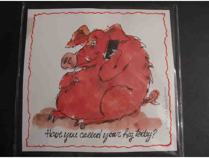 Value $75 A Razorback holds a cell phone to his ear as the caption reminds the viewer, Have you called you hogs today? A must for anyone who loves the hogs, art, humor or all 3! 71/2 inches by 71/2 inches