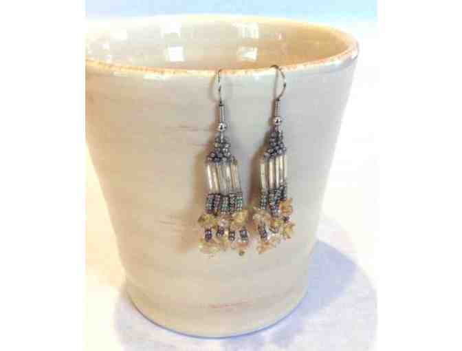 Crystal and silver beaded earrings. Hooks made from sterling silver. Measure 2.5" long.
