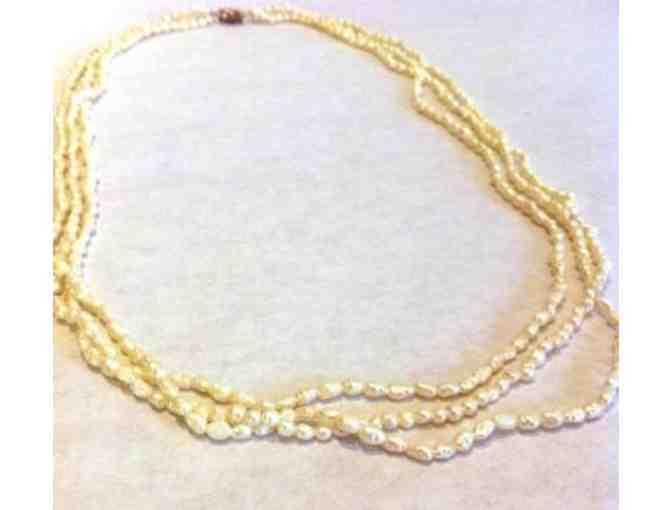 Faux pearl beaded necklace. Twist clasp. Measure approximately 22" long.