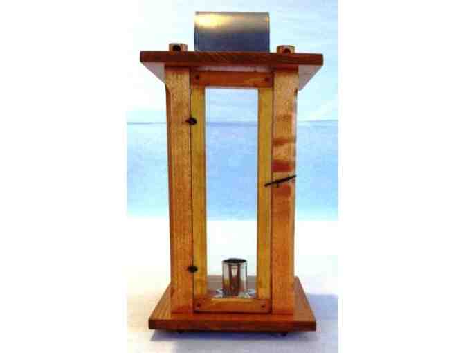 Candle Lantern handmade and donated by Old Salem artist, Jerry Ayers of Old Salem Wood Reproductions.