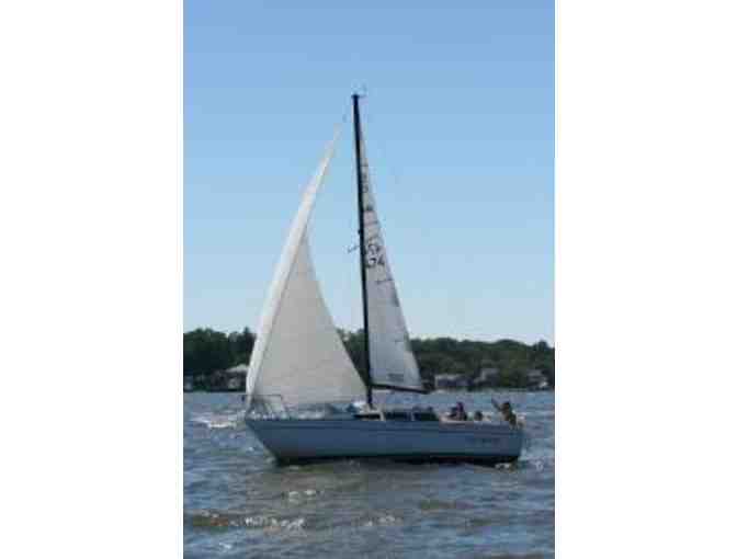 Spend an afternoon or evening sailing on the Chesapeake Bay!  Discover the delights of life on the water as you relax on our cruising sailboat and learn to sail at the same time.  Pick-up and delivery is at the city docks in Annapolis or from marina on the Magothy River.   Beverages, fruit and cheese included.