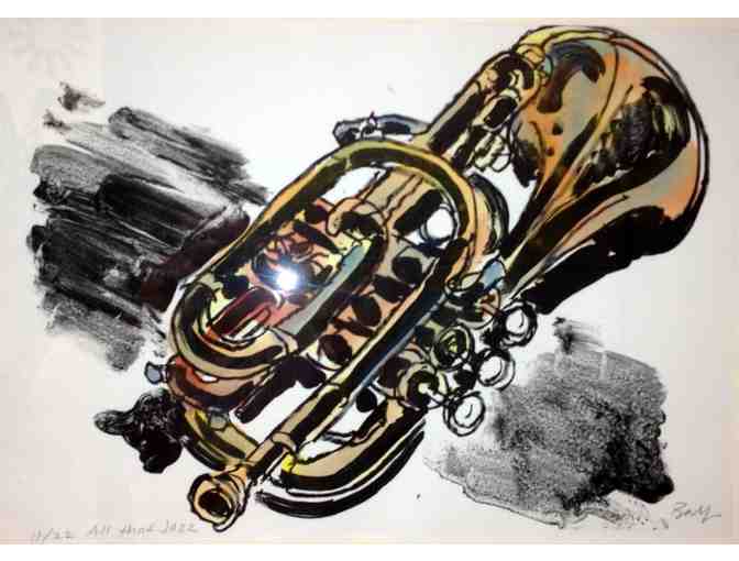 From the Estate of Oliver Balf, this 24" X 18" framed silk screen print of a cornet is sure to jazz up your room!