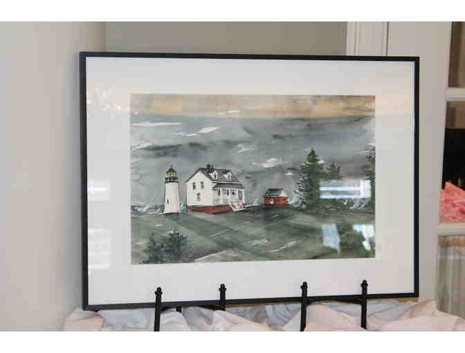 This watercolor was painted by local artist Marty Lehman. Marty graduated from Cornell University's College of Architecture in 1960, and had a professional career in architecture for nearly 50 years working in Stockholm, Sweden, Boston and Cambridge. Watercolors are his passion and painting is a special place where he can focus his creative energies. This scene is of the Pemaquid Point Lighthouse in Bristol, Maine.
