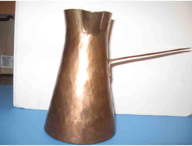 Value $25 Vintage Copper Chocolate Pot with handle Pot is 51/2 inches tall, base 9 inches circumference, opening 7inches circumference - handle is 5 inches in length