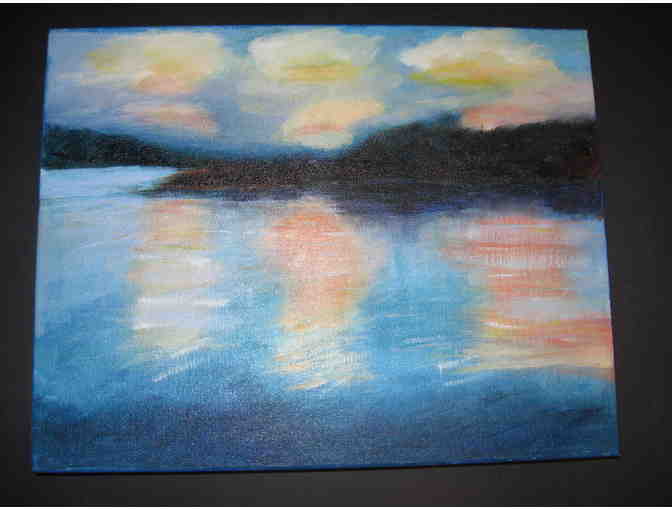 Value $150 Unframed 14 inches by 11 inches Sun filled clouds are reflected in the water below