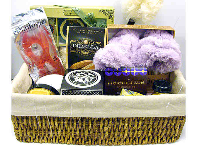 Pamper yourself with this spa basket or give as a gift! This basket is filled with items to help you relax after a long day.