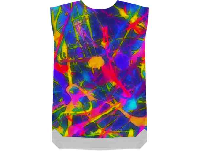 Show off those beautiful legs and float through any event in artified style that will, definitely, get YOU noticed! or... Throw on a pair of jeans, leggings, or leather pants and simply "strut" this work of art anywhere you go!