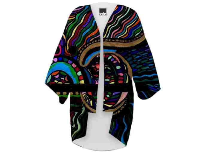 It's all in the details! Each work of art will cover the entire kimono / The reverse side will mirror the front / 100% polyester chiffon
