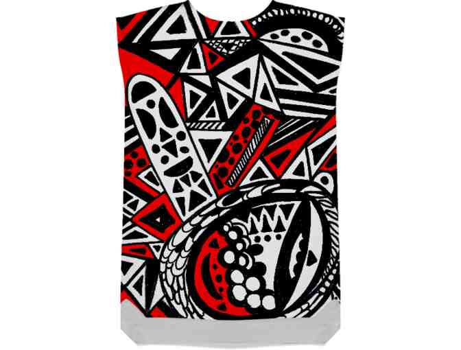 Show off those beautiful legs and float through any event in artified style that will, definitely, get YOU noticed! or... Throw on a pair of jeans, leggings, or leather pants and simply "strut" this work of art anywhere you go!