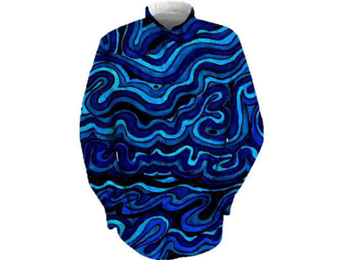 On a more personal experience note: When I ordered the original samples, I could not resist ...I had to wear them, and these art shirts have become my "go to essential" in my wardrobe! I could not begin to even describe how comfortable and versatile they are...with jeans, open with a tank under, or belted...they are color saturated, have long lasting sturdy heft, yet these shirts are so dang comfortable, I keep ordering more! Yes, it is fun..really WAY COOL to WEAR ART!! (WBK)