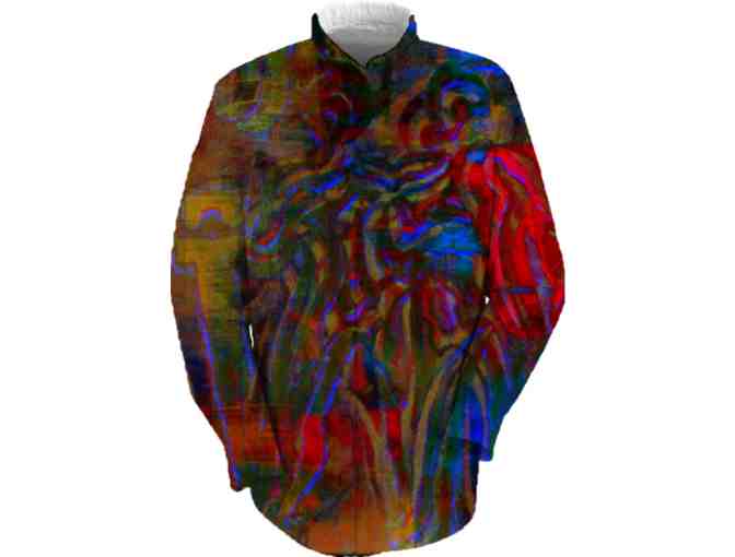On a more personal experience note: When I ordered the original samples, I could not resist ...I had to wear them, and these art shirts have become my "go to essential" in my wardrobe! I could not begin to even describe how comfortable and versatile they are...with jeans, open with a tank under, or belted...they are color saturated, have long lasting sturdy heft, yet these shirts are so dang comfortable, I keep ordering more! Yes, it is fun..really WAY COOL to WEAR ART!! (WBK)