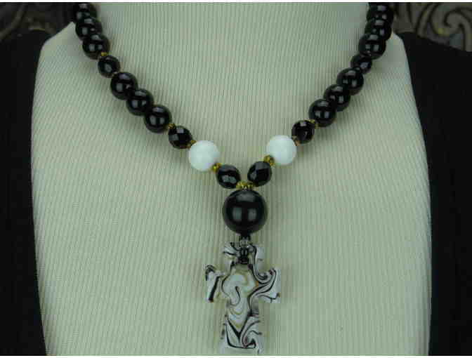 • FEATURES:  ONYX AND WHITE MARBLE BEADS