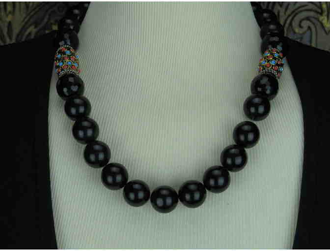 - FEATURES: LARGE FACETED ONYX AND INLAID BEAD ACCENTS