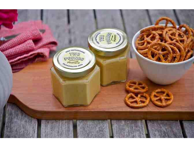 Enjoy a case of small jars of Two Pounds Mustard.