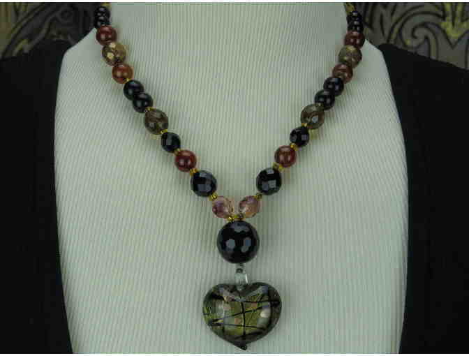 - FEATURES: ORNATE COLORFUL LAMPWORK HEART AND BLACK ONYX