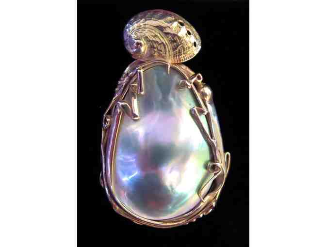 14K Gold and Abalone Mabé Pearl Pendant (1"W x 1.75"H), Randall Dexter