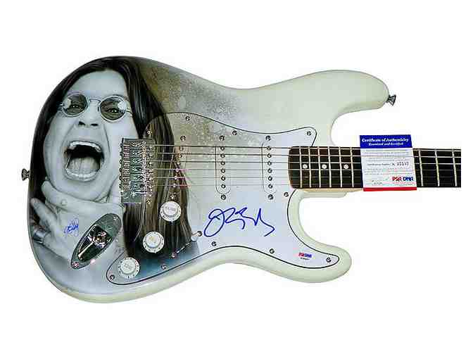 This is an electric guitar with custom airbrush artwork that has been hand signed in person by John "Ozzy" Osbourne. A Certificate Of Authenticity will be included from UACC Registered Dealer #237 / 2011 UACC Autograph Dealer Of The Year!In addition to our own certification this item has been examined and certified authentic by PSA/DNA and features their tamper resistant PSA/DNA sticker with unique # which can be looked up on their website for confirmation. The PSA/DNA # is:K35507