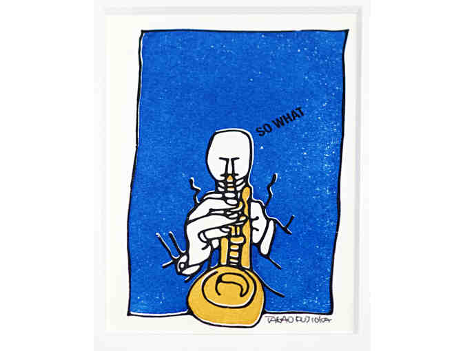 One of a kind, original, multimeda archival chromogenic print by Jazz artist, Takao Fujioka. Matted and framed in white.